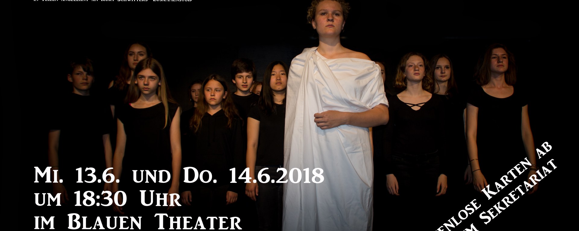 Fokussiert, konzentriert und mit maximaler Körperspannung erzählen die rund 30 Schauspieler des Mittelstufentheaters, unter der Leitung von Frau Hitzler, die Geschichte von drei Göttinnen, die aufgrund des schlechten Verhaltens der Menschen einen Kometen auf die Erde schießen wollen. Eine der Göttinnen sieht jedoch noch das Gute im Menschen, weshalb sie die sogenannte Ordnungspolizei auf die Erde schickt, die die bösen Menschen einsammelt, umpolt und somit das Böse vernichten soll. Sobald alles Böse ausgelöscht worden wäre, würde der Komet und der Weltuntergang aufgehalten werden.