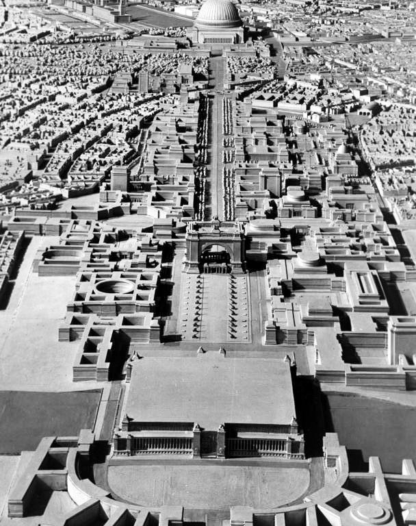 Geplant von Albert Speer, „Generalbauinspektor für die Reichshauptstadt“ (GBI), sollte „Germania“ auf dem Gebiet Berlins die Hauptstadt eines „Großgermanischen Reiches“ werden und so den Nationalsozialismus in aller Welt repräsentieren. Des Weiteren sollte die Stadt auch durch den Namen ideologisches Bindeglied zwischen den „germanischen“ Völkern bilden, auch wenn diese weit verstreut lebten. Dem antiken Baustil nachempfunden sollte „Germania“ mit prächtigen Bauten das Gegenteil moderner Städte sein, an denen Hitler das Fehlen von Wahrzeichen und monumentalen Bauten kritisierte.
