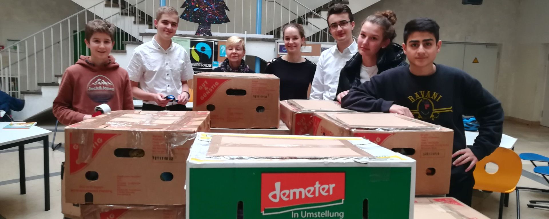 Organisiert von Frau Schöttner, an die ein großer Dank der SMV im Namen aller Schüler geht, stellte jede Klasse der Unter- und Mittelstufe im November und Anfang Dezember ein großes Paket mit Mehl, Nudeln, Gummibärchen, Lebkuchen und vielen anderen leckeren und nützlichen Produkten zusammen. Anschließend verschlossen einige engagierte Schülerinnen und Schüler der SMV gemeinsam mit Frau Schöttner und Frau Morgenthaler die Lieferungen und brachten sie in die Autos.