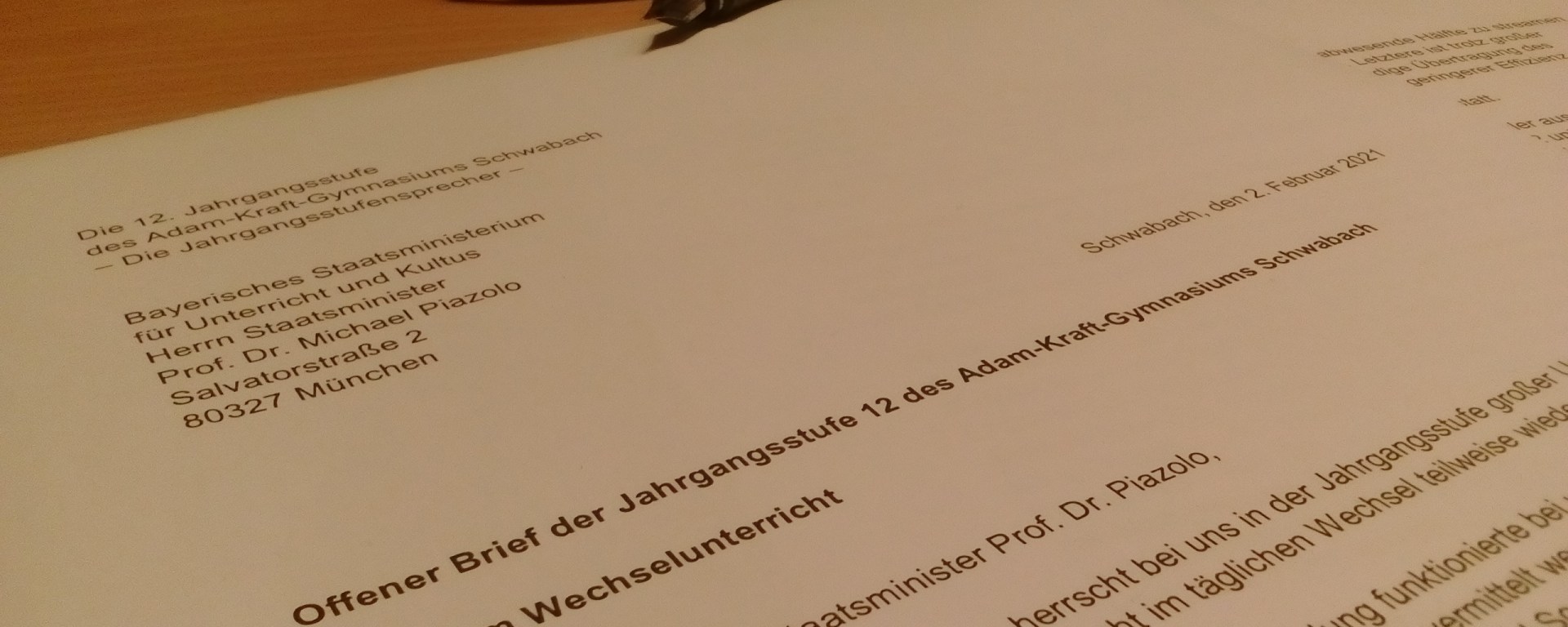 Offener Brief der Jahrgangsstufe 12 des Adam-Kraft-Gymnasiums Schwabach