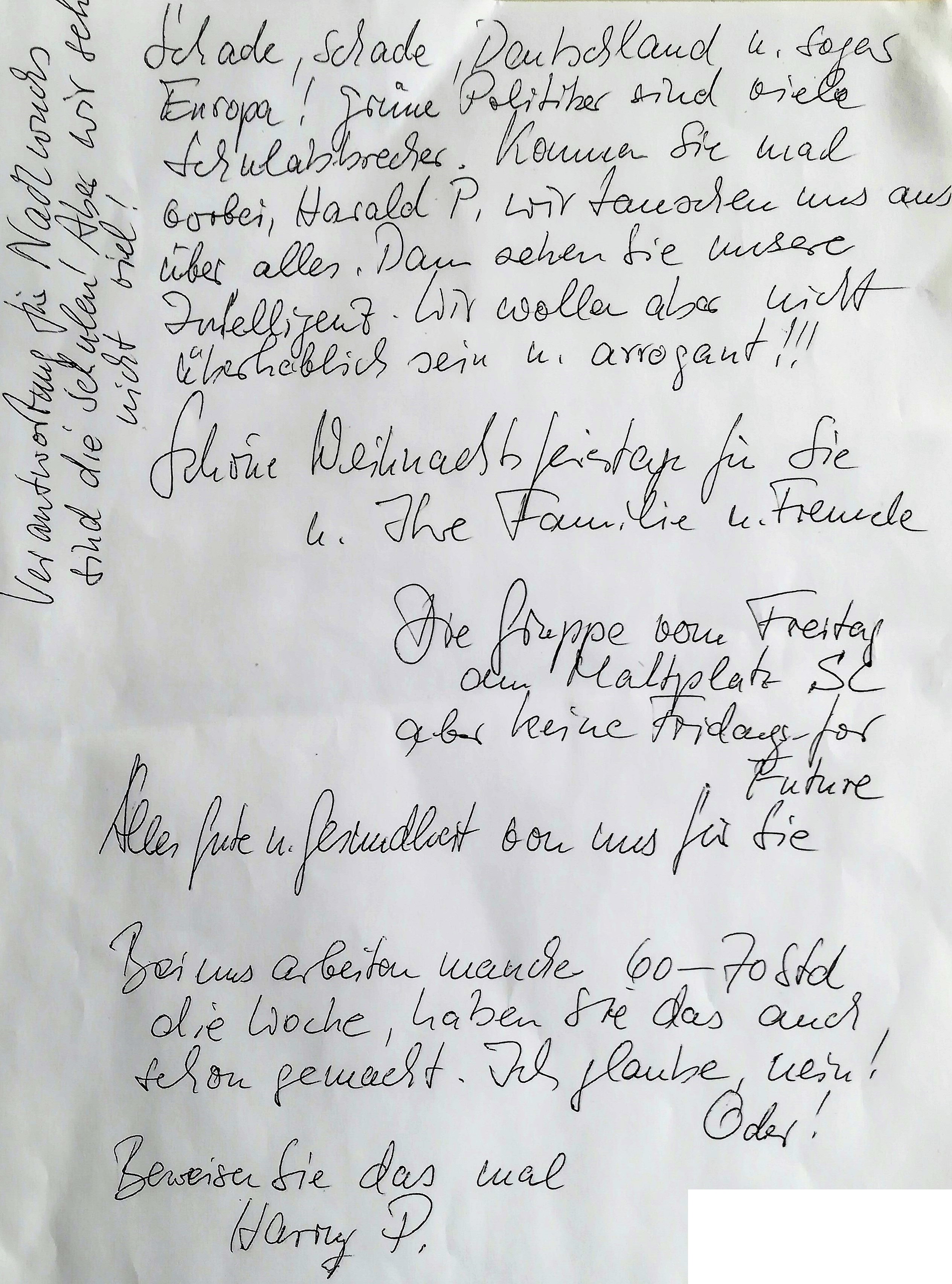 Haben Sie schon einmal herausgekriegt, wer Ihnen solche Briefe schreibt?
