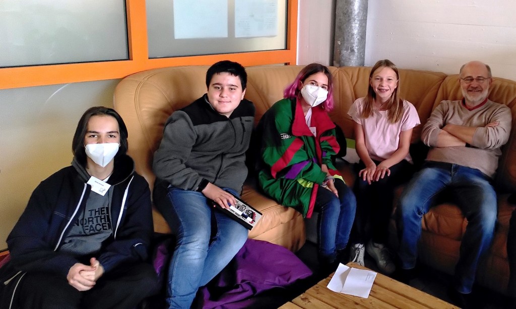 Das Interview führten (von links nach rechts): Niklas Schreyer (Q11), Semih Durak (6b), Ronja Gruber (Q11) und Penelope Velt (6a).