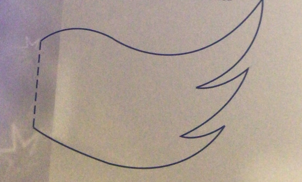 Schritt 1: Faltet die Goldfolie in der Mitte und malt Flügel, die so ähnlich aussehen, wie auf dem Foto so auf die Folie, dass die gestrichelte Linie auf der gefalteten Seite ist.